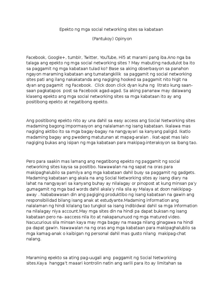 Epekto Ng Mga Social Networking Sites Sa Kabataan Pdf