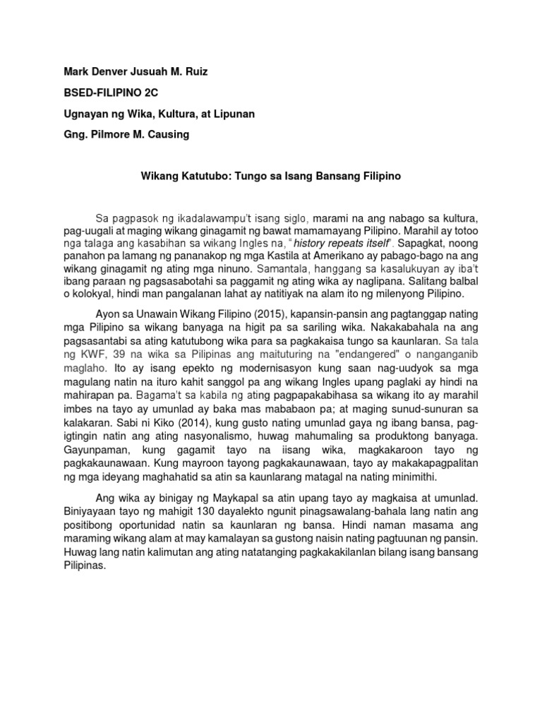 Ito ang Wikang Filipino. Wika na aking nagamit nagamit upang makasabay. I did not expect Essay Tungkol Sa Wikang Katutubo Tungo Sa Isang Bansang Filipino such generosity especially given that my project is large hard and urgent.
