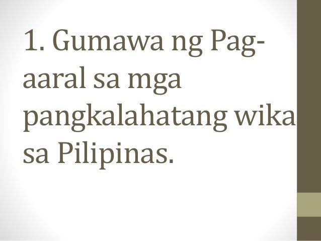 Kasaysayan ng Wikang Pambansa sa ilalim ng Koronang Kastila 3. Ang kongreso ay gagawa ng mga hakbang tungo sa pagpapaunlad at pagpapatibay ng isang wikang pambansa na batay sa isa sa mga umiiral na katutubong wika. Course Title ENGLISH 451A.