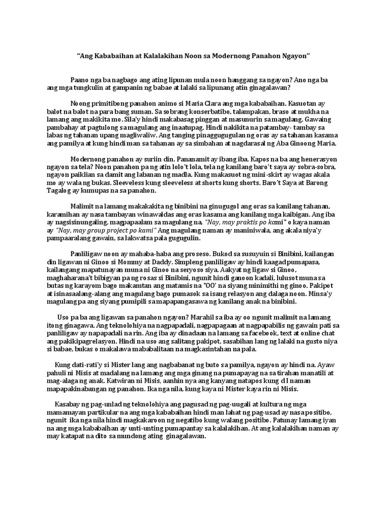KRITIKAL NA SANAYSAY BABAE KASI Ang mga babae ay itinuturing na mas mababa o inferior kung ikukumpara sa mga lalaki. Paghahambing Sa Kabataan Noon At Kabataan Ngayon. Gampanin ng Kababaihan Sanaysay Isang nakasulat na.