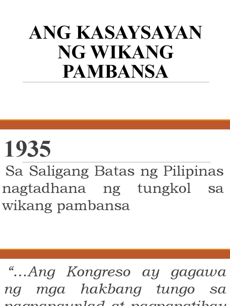 Ang wikang ito na mahiwaga na nagpababatid ng mga kaalaman ay lalong mabisang maikakasangkapan sa ating pambansang kaunlaran kung itoy lubos at puspusang. Filipino 1 28102019 2128. Kalaunan ay ginawang Filipino ang wikang pambansa.